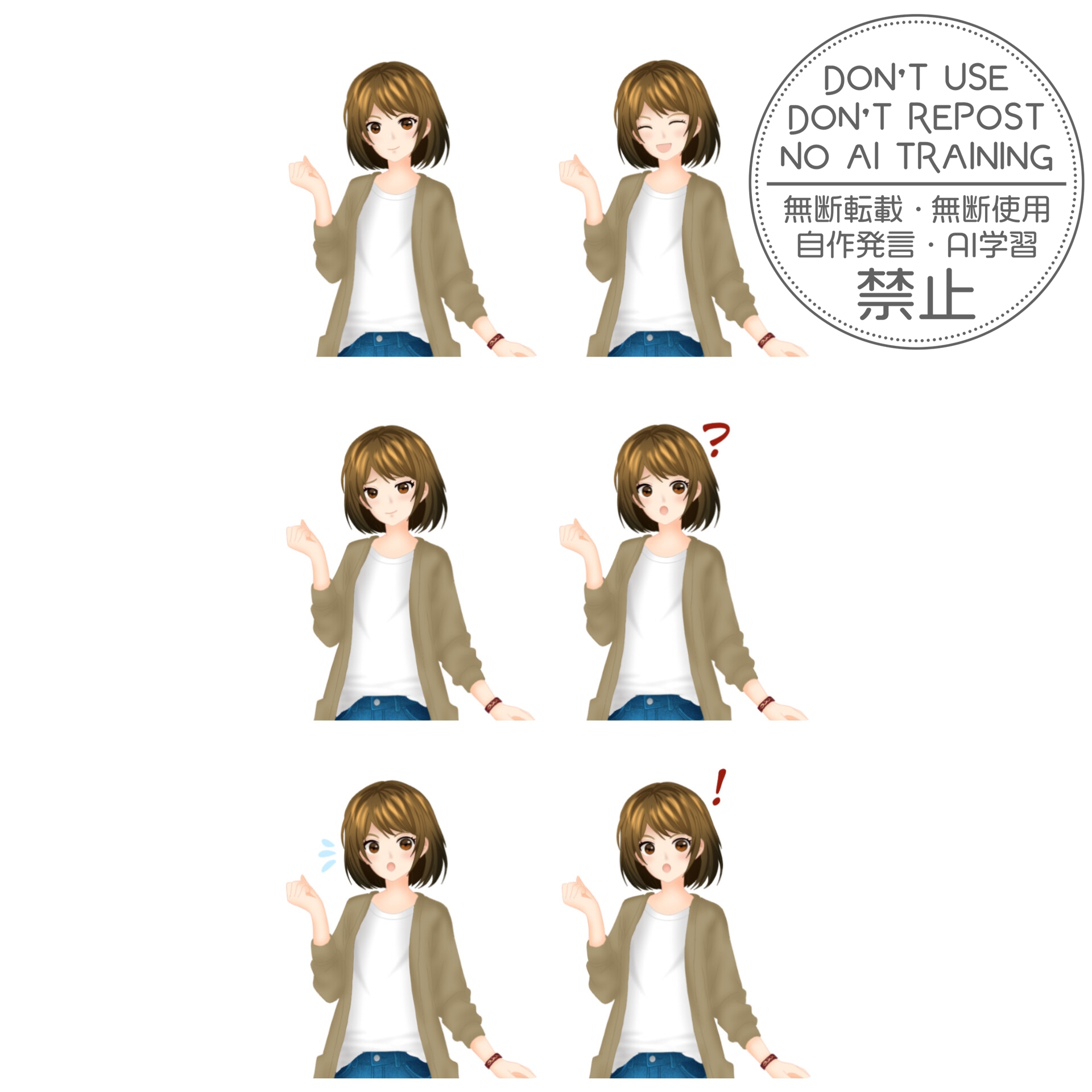 Also included is an original female character sprite with six expressions. (Somewhat a bonus content, not the main focus of what this pack is)